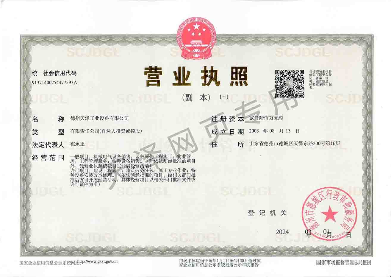 德州天澤工業(yè)設(shè)備有限公司成立于2003年(前身為德州天元集團(tuán)天明工業(yè)設(shè)備安裝公司),經(jīng)過20多年的發(fā)展,現(xiàn)成長為擁有職工600余人,各類專業(yè)技術(shù)人員近300余人,年生產(chǎn)能力兩億元以上,以建筑機(jī)電安裝工程、消防設(shè)施安裝工程施工為主,集建筑工程施工、市政工程施工、建筑智能化工程施工、園林綠化工程施工、工程管理服務(wù)、物業(yè)管理、電氣機(jī)械設(shè)備銷售等多元化經(jīng)營于一體的綜合型企業(yè)。2005年,企業(yè)按照國際標(biāo)準(zhǔn)建立的質(zhì)量管理體系,通過了ISO質(zhì)量管理體系認(rèn)證、環(huán)境管理體系認(rèn)證、職業(yè)健康安全管理體系認(rèn)證。施工工程遍布山東、河北、四川、江蘇等地,最具代表性的工程有:山東省德州市百腦匯資訊廣場機(jī)電安裝工程、德州經(jīng)濟(jì)開發(fā)區(qū)天元大廈機(jī)電安裝工程、陵城區(qū)人民醫(yī)院機(jī)電安裝工程、德州金魯班大廈機(jī)電安裝工程、河北故城金辰小區(qū)機(jī)電安裝工程、北川地震災(zāi)后援建工程等。多年來,公司始終堅(jiān)持“以人為本,建精品工程,創(chuàng)行業(yè)品牌”的經(jīng)營理念,先后榮獲省(市)級泰山杯、天府杯、魯安杯等獎項(xiàng),申報各種功法、多項(xiàng)專利。
